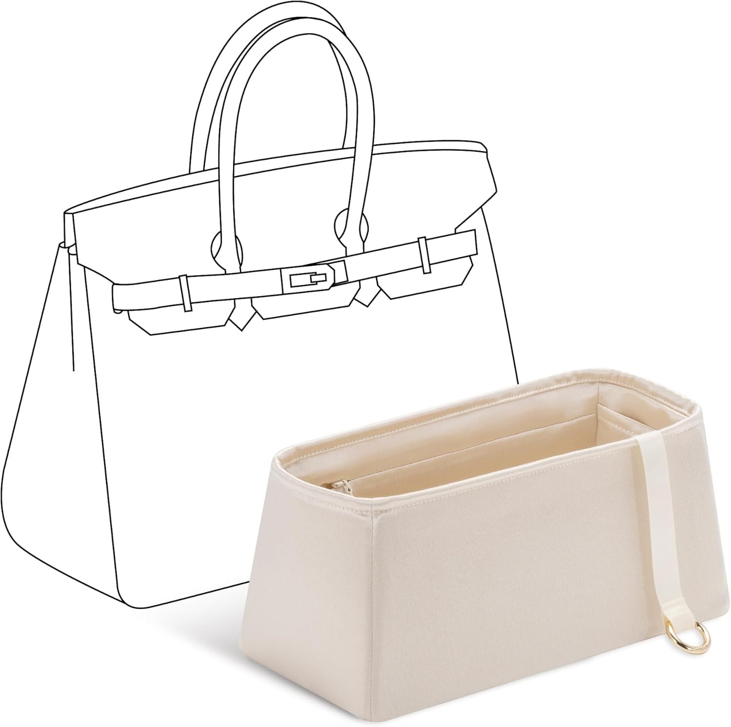 Bag Organizer Insert for HERMES Birkin 25 Handbag,Custom Fit Inside Premium Silk Satin Handmade Luxury Purse Bag Shapers Insert with Zipper(Cream White)