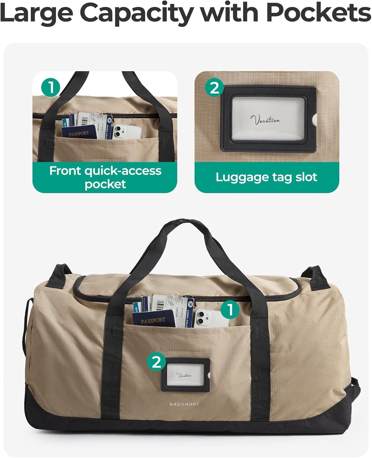 “Just In Case” Bag: It quickly compacts into a compact size for easy storage in your main luggage or closet, then unfolds in seconds to a full 83L duffel bag. This seamless transformation makes it the perfect extra travel bag for spontaneous shopping, souvenir hauls, or as a must-have backup bag for any trip