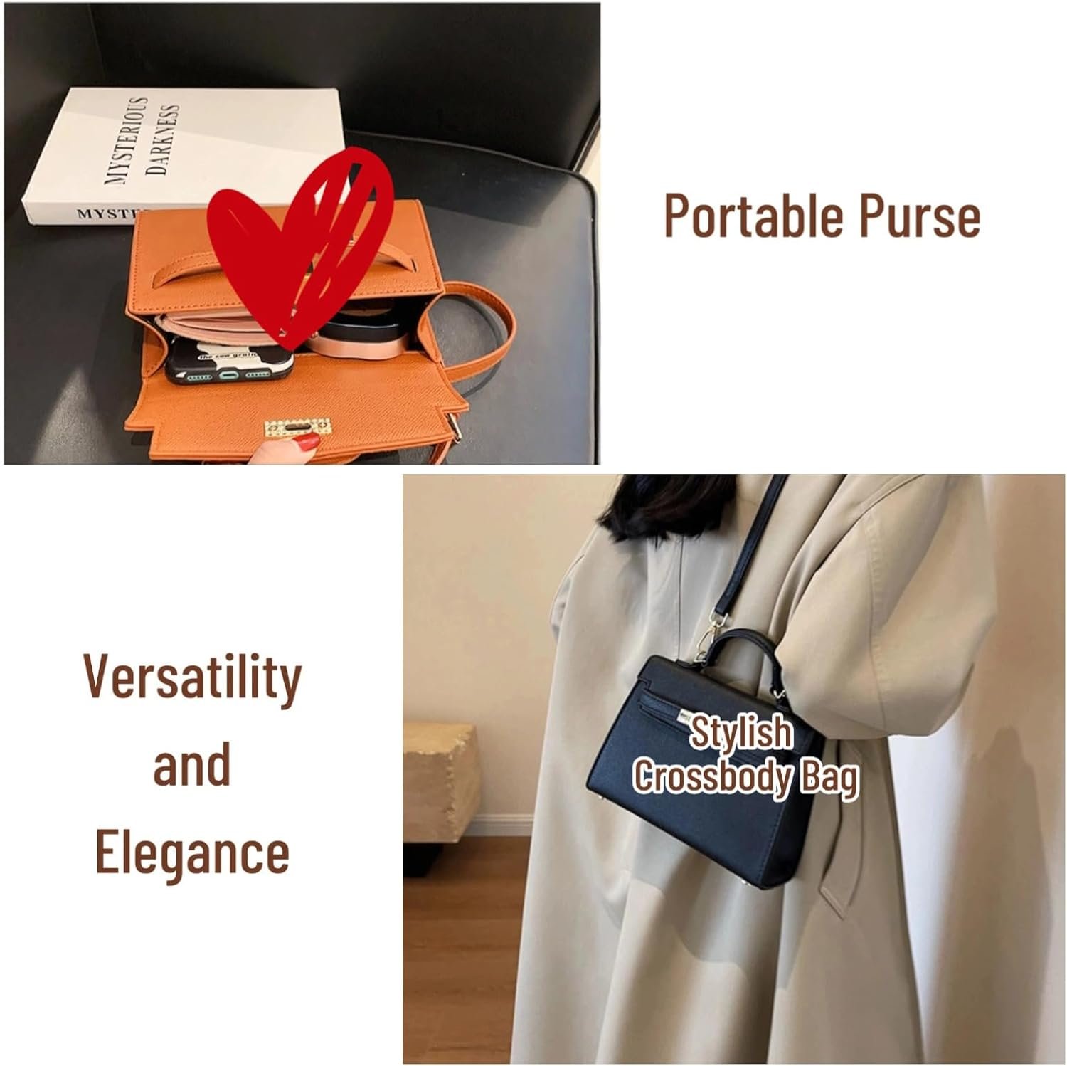 Easy to collect your phone, small wallet, sunglasses, cosmetics, keys, tissues, glasses, lipsticks, cash, cards, tickets, and other small daily necessities.