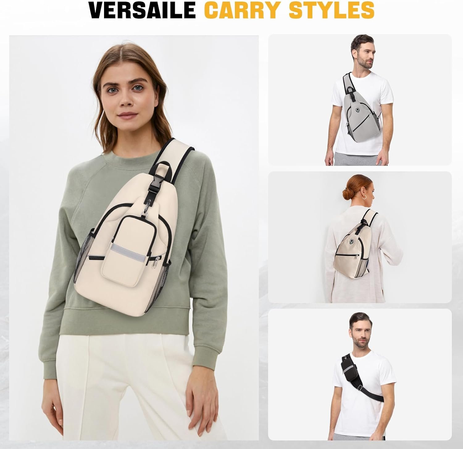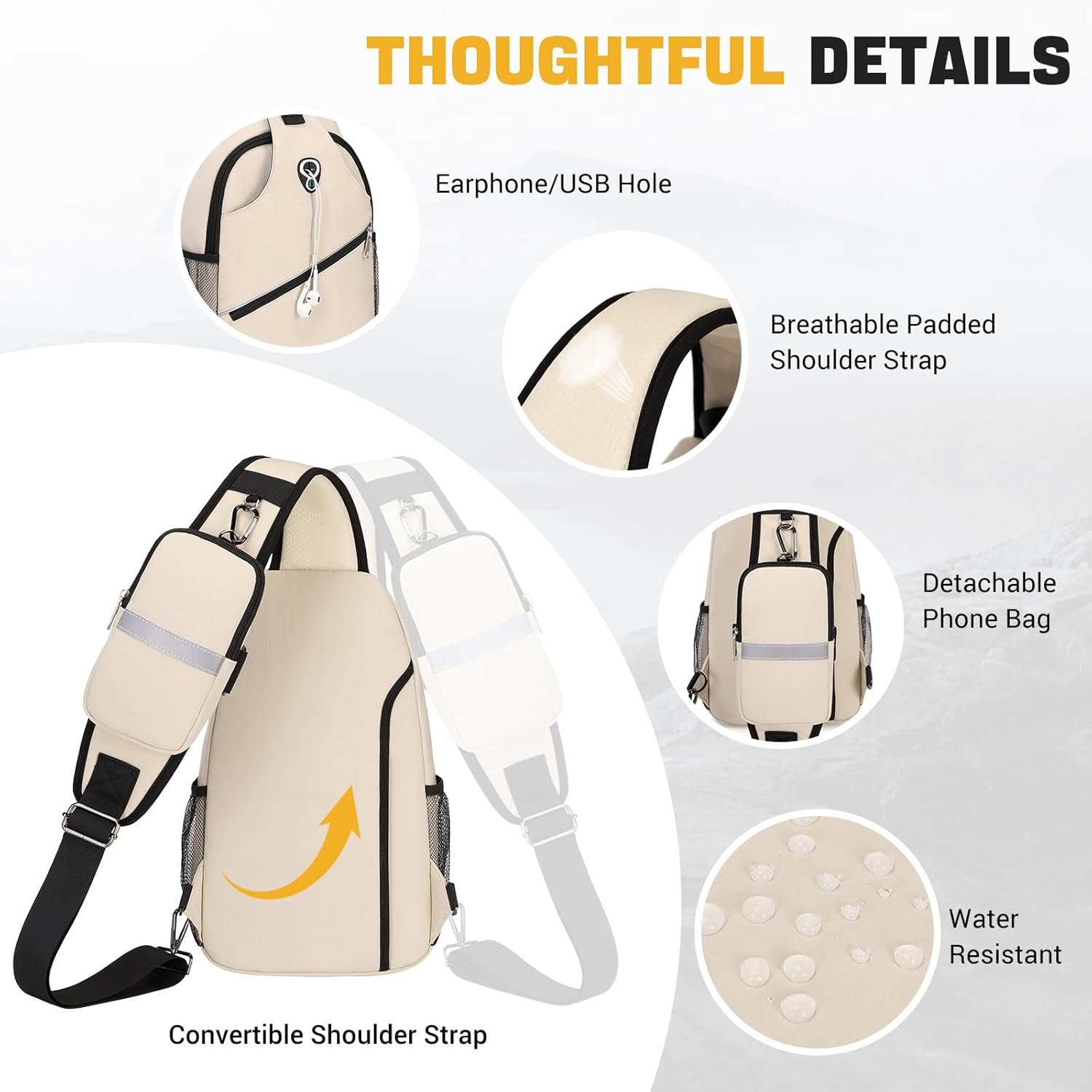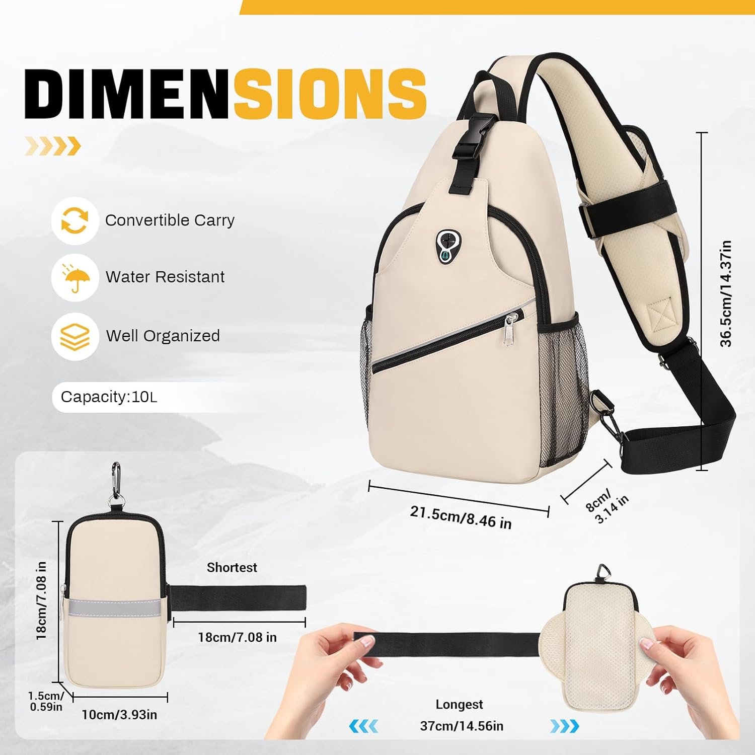 Stylish and Versatile: designed keeping in mind multi-functionality, the lightweight sling bag of women men serves multiple purposes, short hiking, running, traveling, cycling, daily.