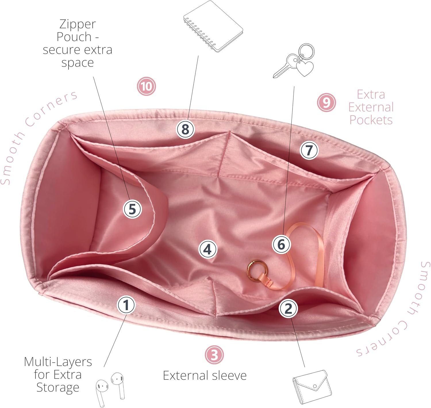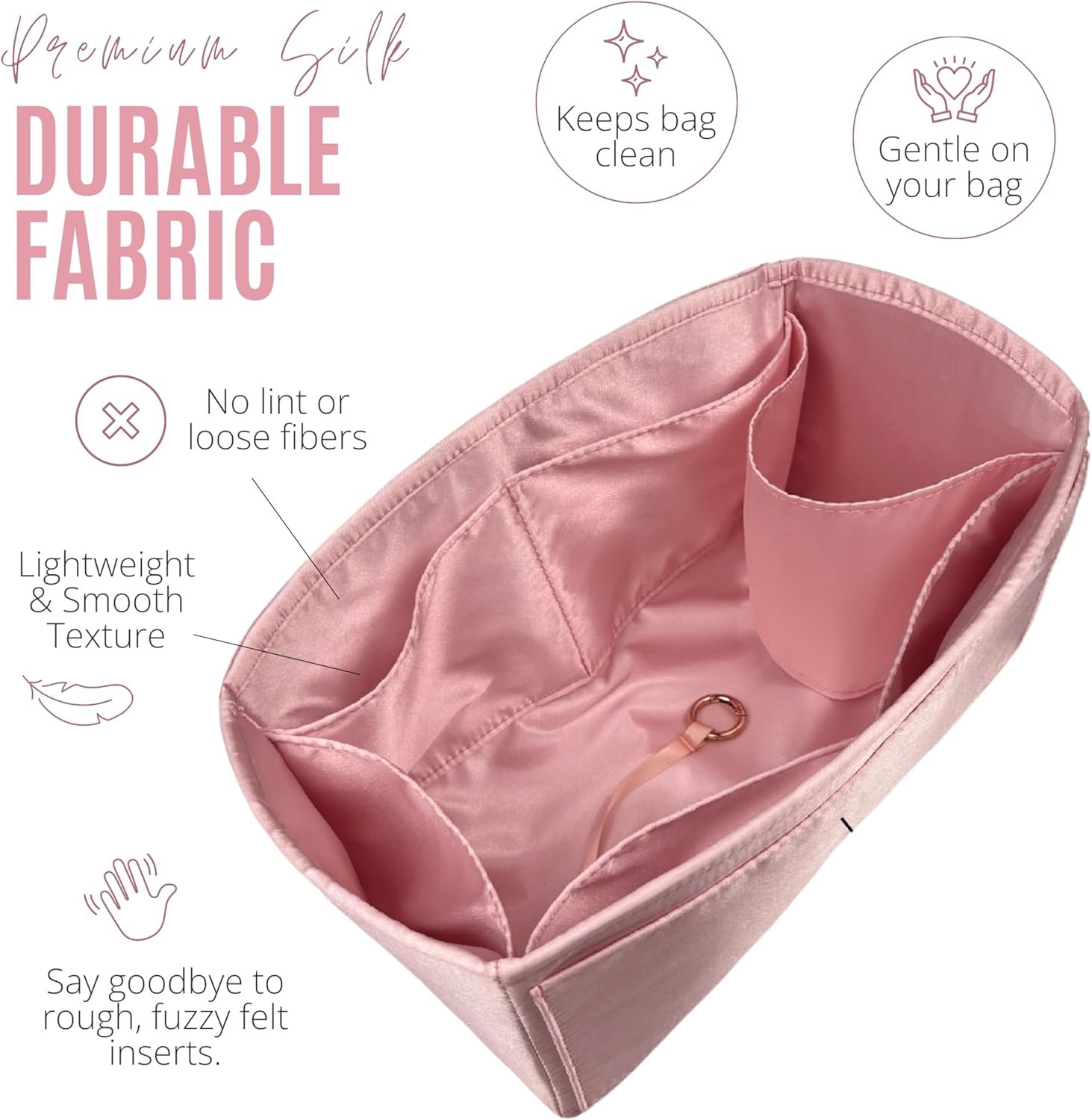 EASY TO CLEAN: Spills happen — our waterproof silk wipes clean in seconds, so your insert stays as pristine as your bag, no matter what the day brings.