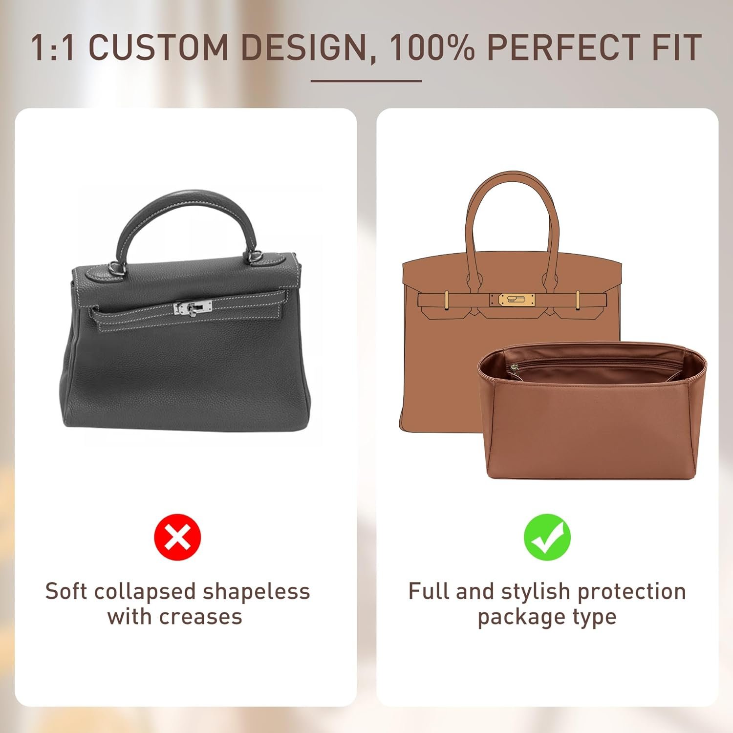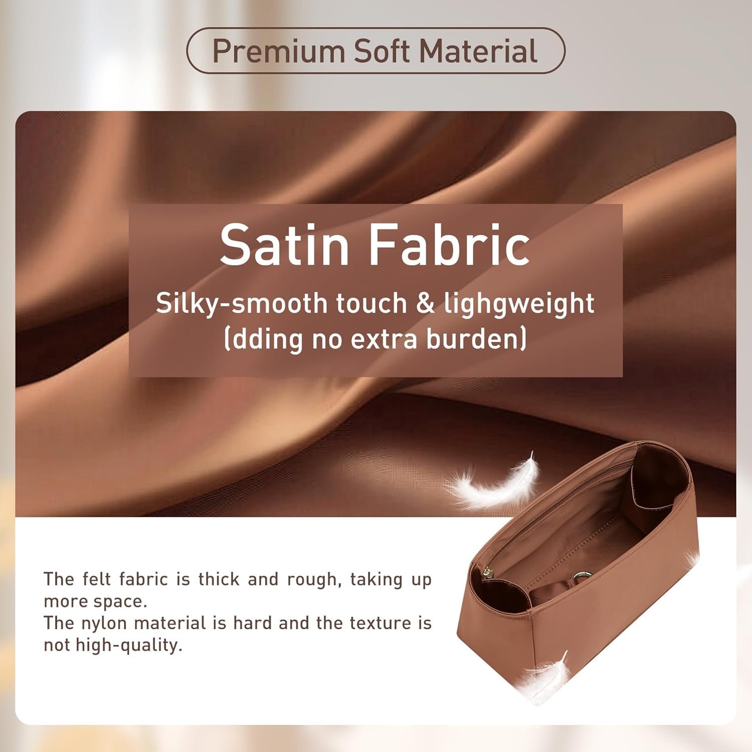 Luxury Satin Material‌: This purse organizer insert uses premium satin fabric with a silk-like sheen, combining softness with structural support. The bag organizer insert weighs only 0.2 lbs, ensuring your Birkin remains lightweight while protected from stains and scratches.