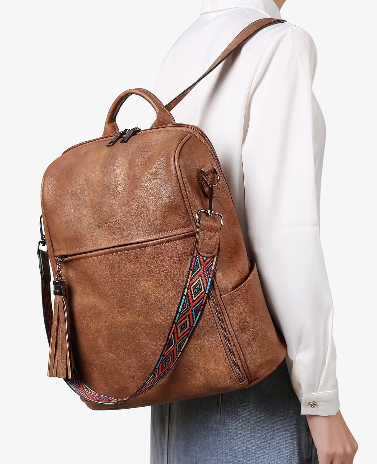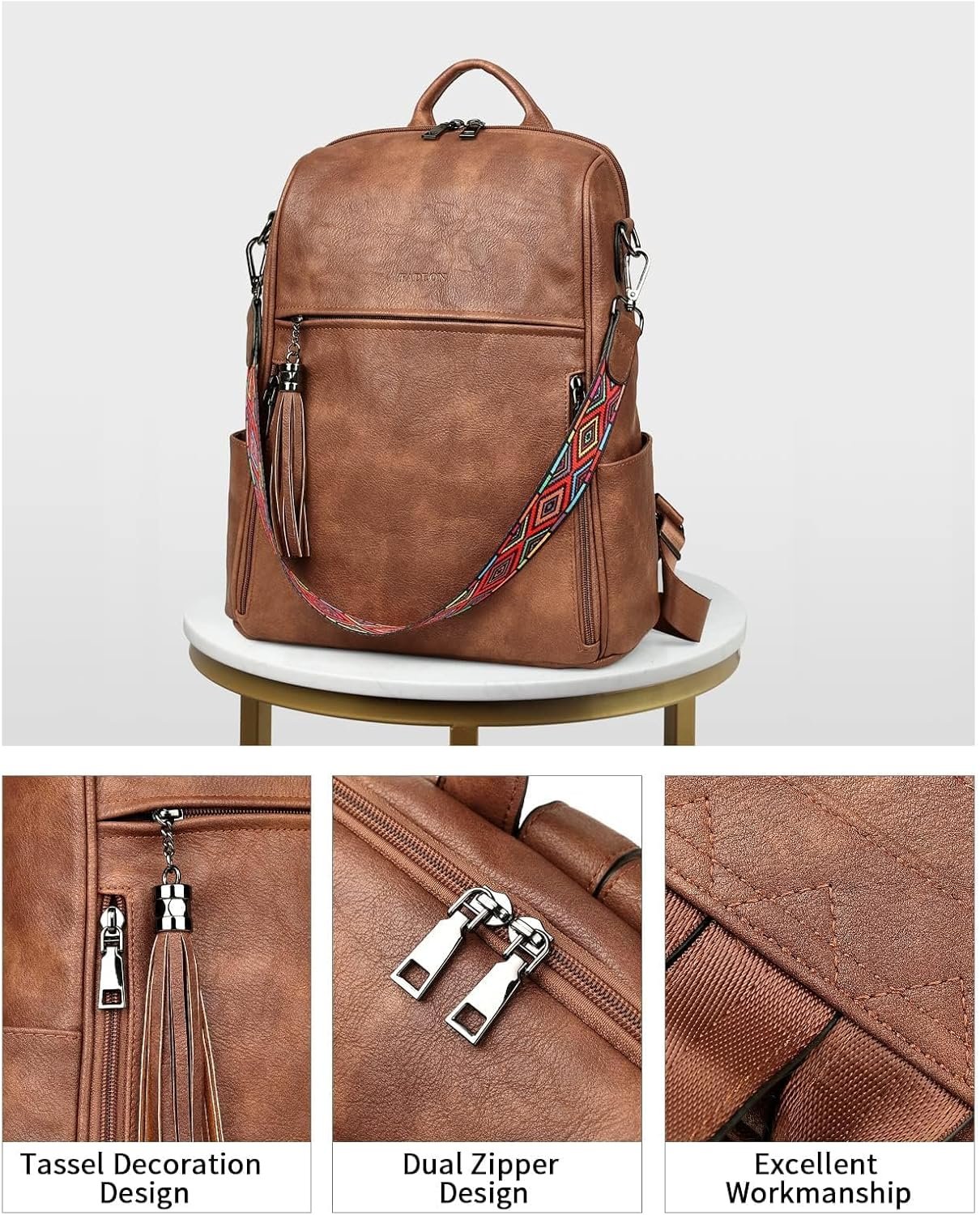 FADEON Leather Backpack Purse for Women Designer Travel Backpack Purses PU Fashion Ladies Shoulder Bag with Tassel