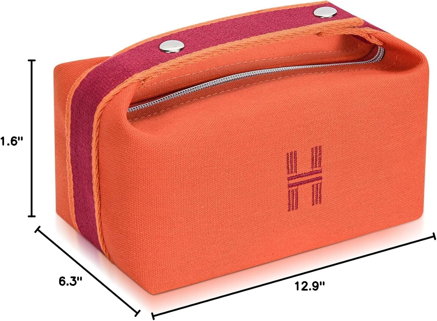Fashion Makeup Bag for Women, Orange Red Canvas Make up Travel Bag, Hanging Cosmetic Bag Organizer for Wome