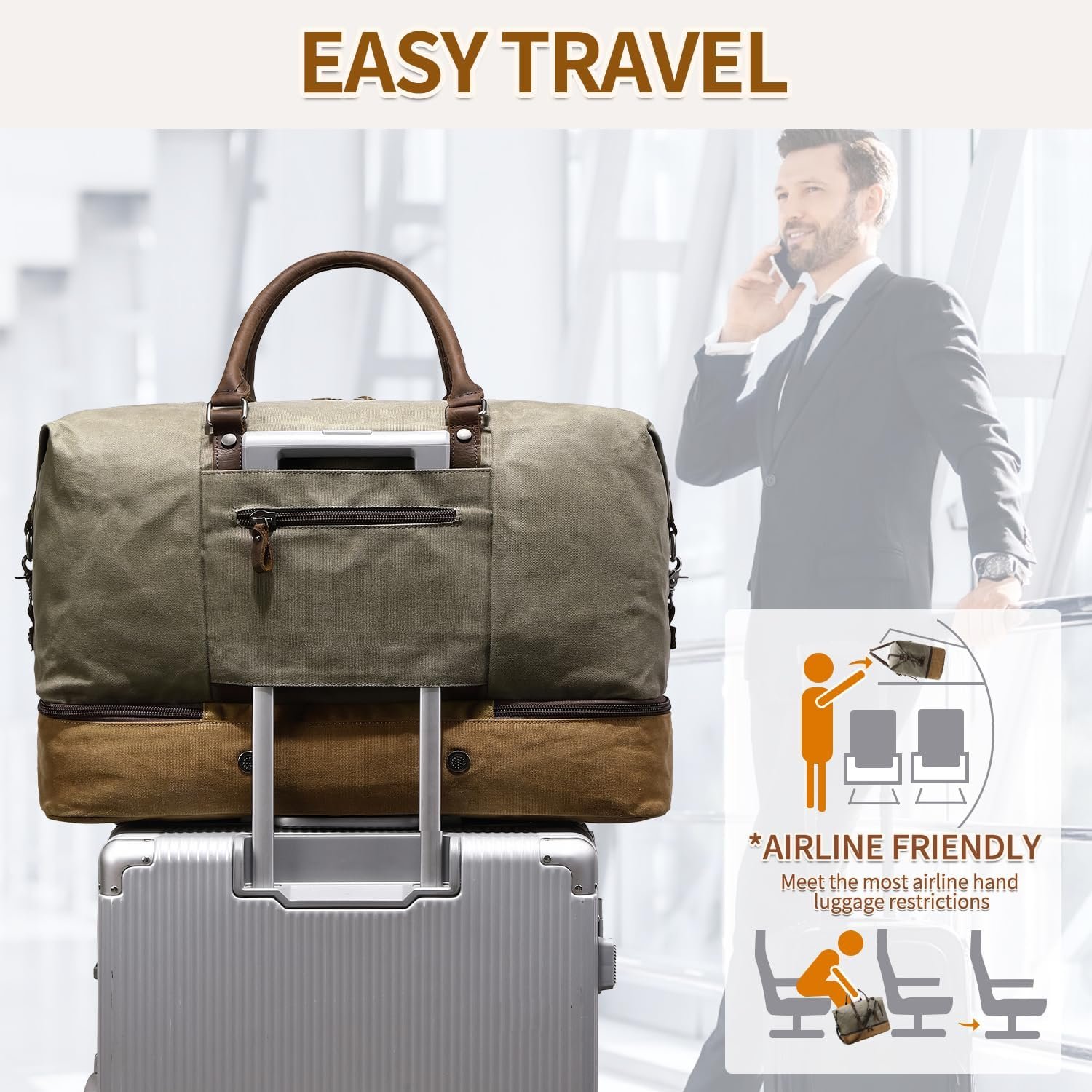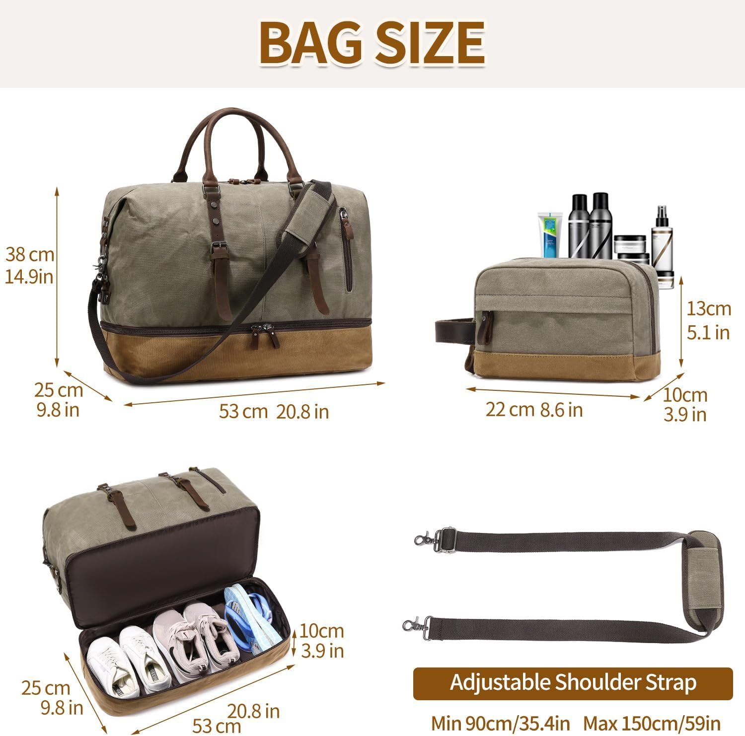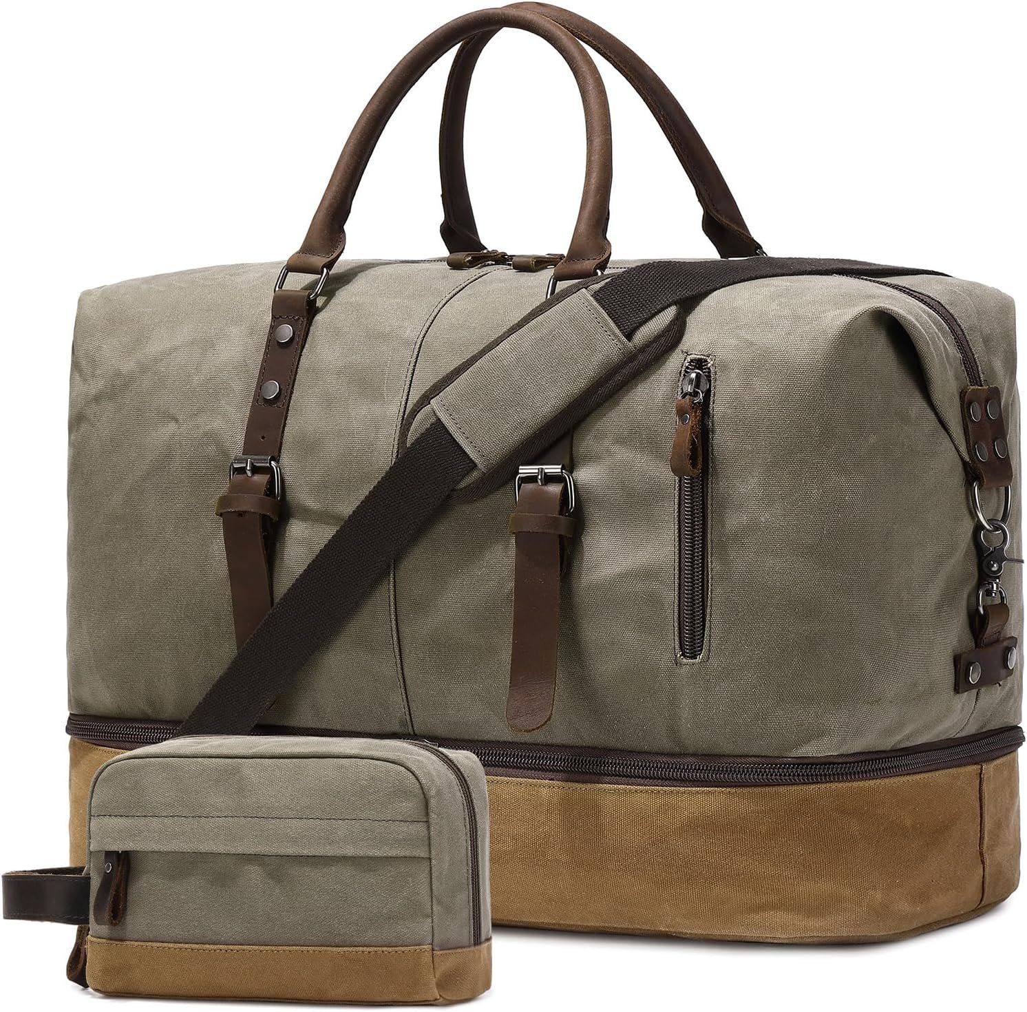 Quality Material: FENGDONG weekender bag is made of water resistant,durable waxed canvas and top quality genuine leather, it is durable in use and rich in looks, handcrafted by skilled craftsmen. 100% quality inspected before they are delivered to you.