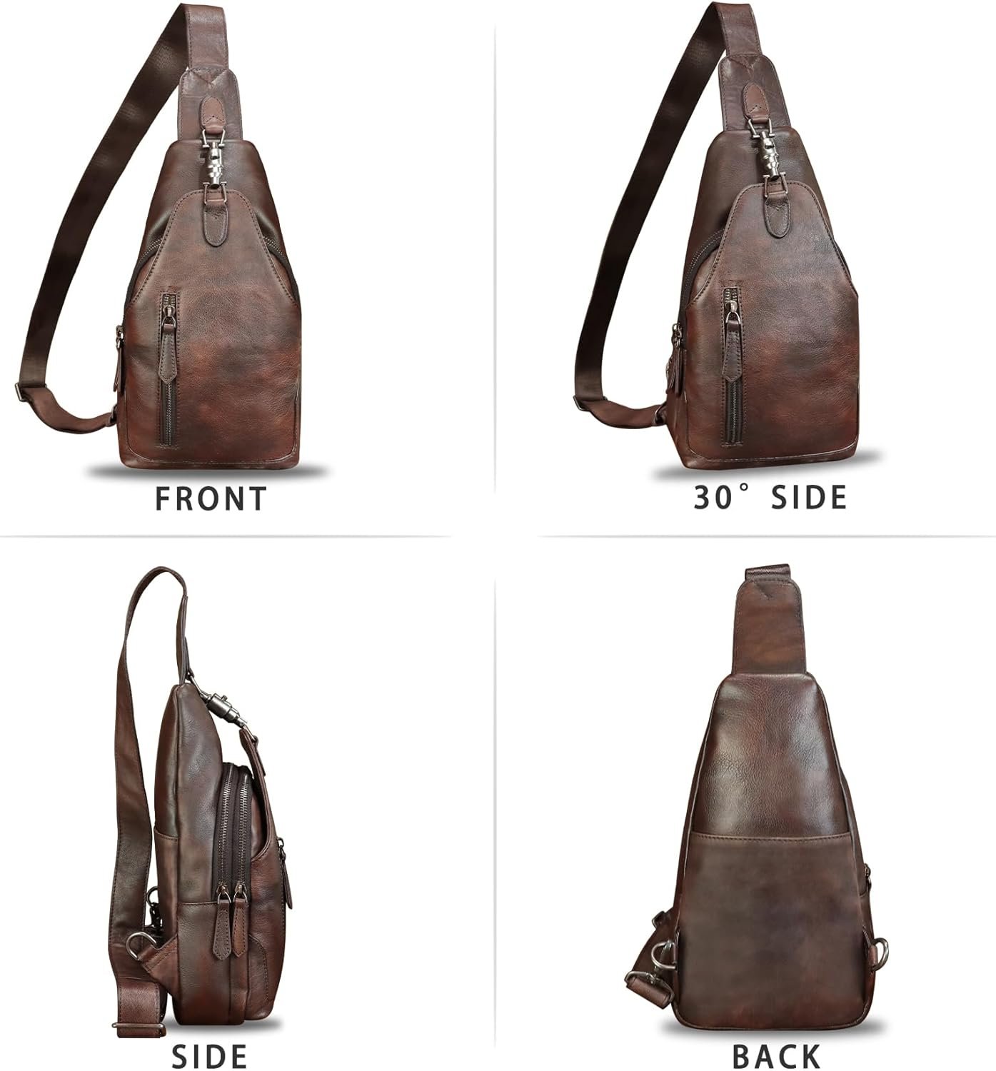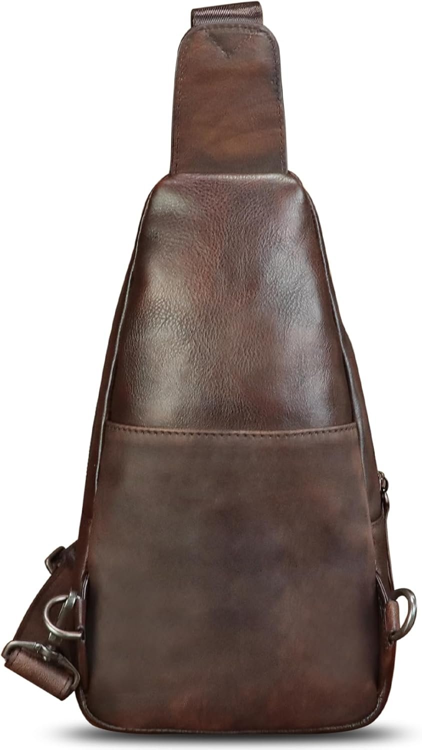 Genuine Leather Sling Bag for Women and Men Vintage Handmade Leather Sling Backpack Fashion Crossbody Bag Chest Purse