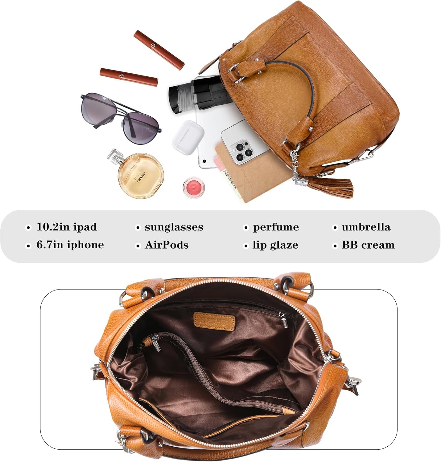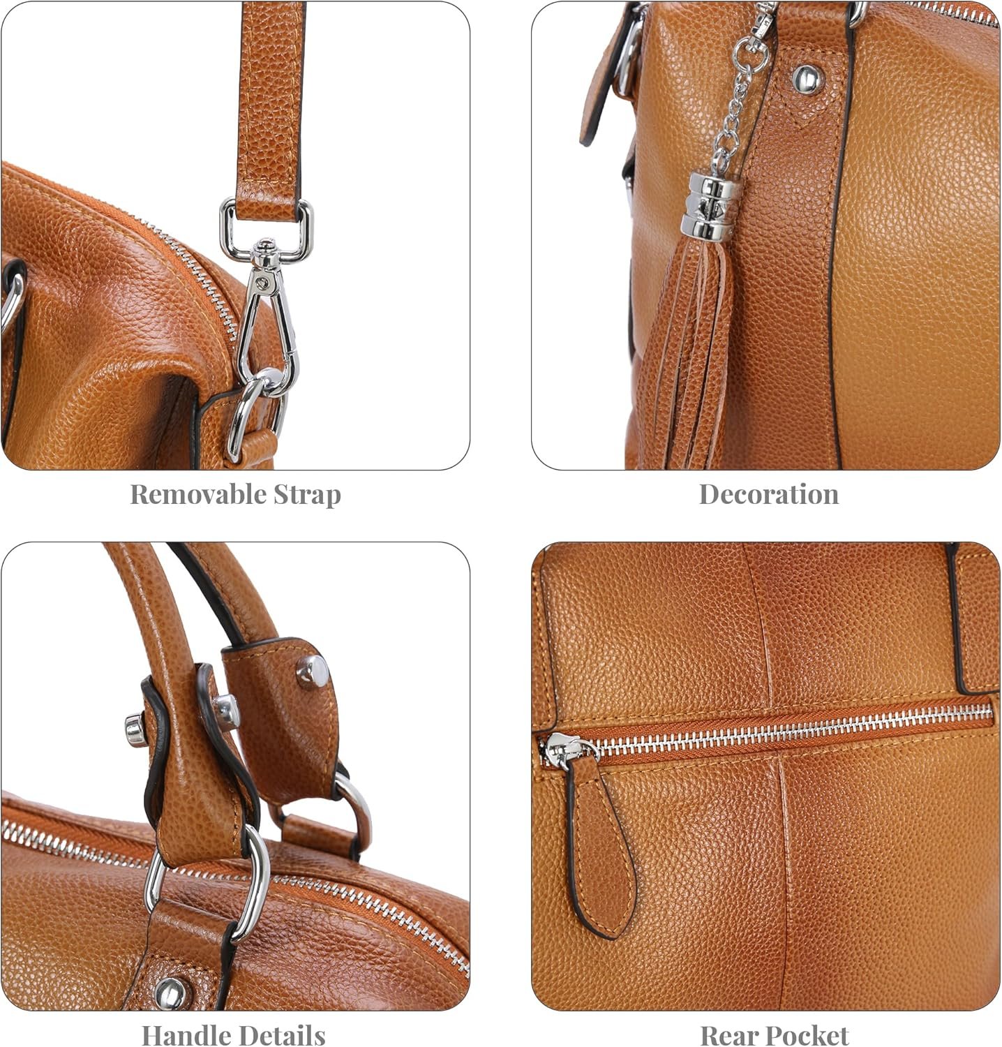 Premium natural Top Grain Leather, sturdy solid hardware and high-quality lining, retro coloring process makes this bag looks unique.