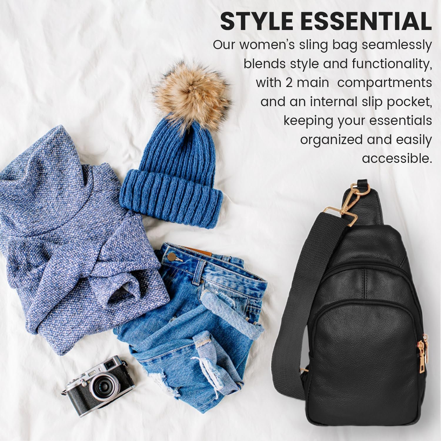 Premium Material – Our Sling Bag for Women is crafted from high-quality, tear-resistant, and waterproof cowhide leather. This ensures durability and longevity while maintaining a sleek, stylish look. The soft material is also easy to clean, making it perfect for daily use and outdoor adventures.