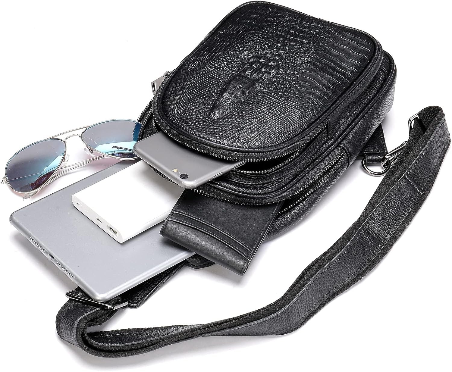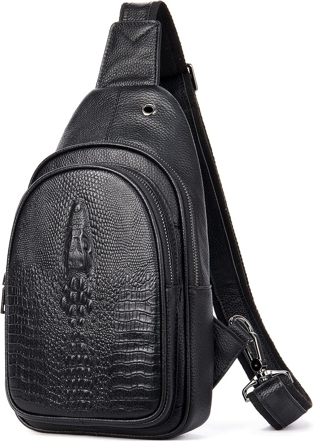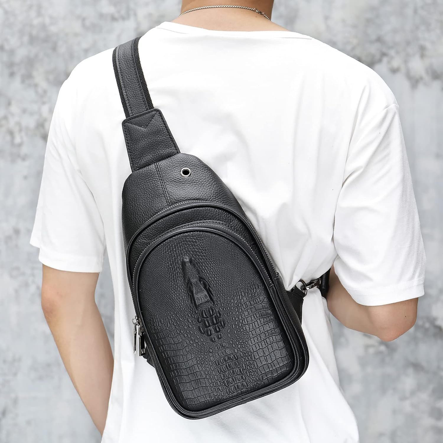 NIUCUNZH Crocodile Leather Sling Bag with Leather Strap, 3 Zipper Crossbody Shoulder Bags for Travel Hike Everyday Carry