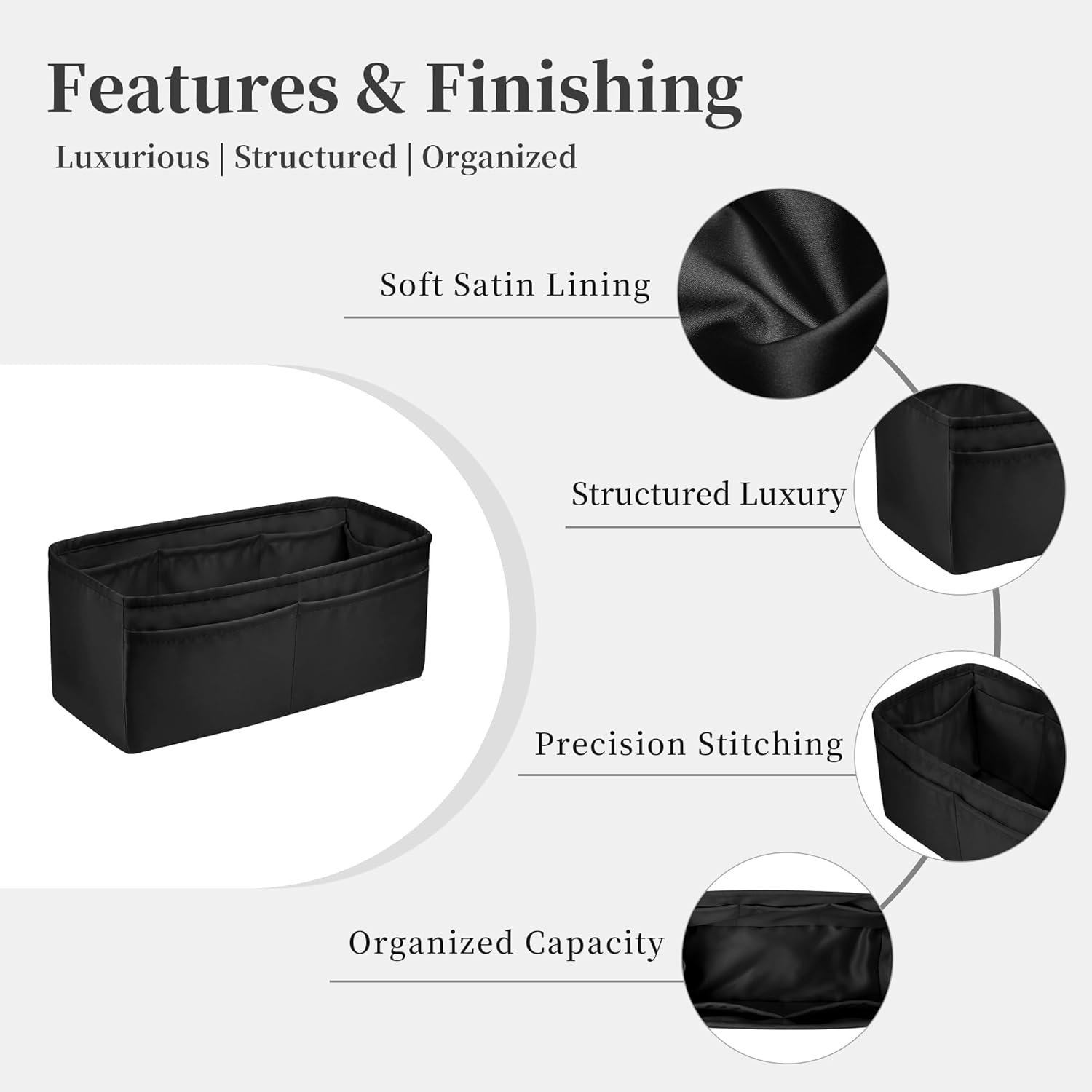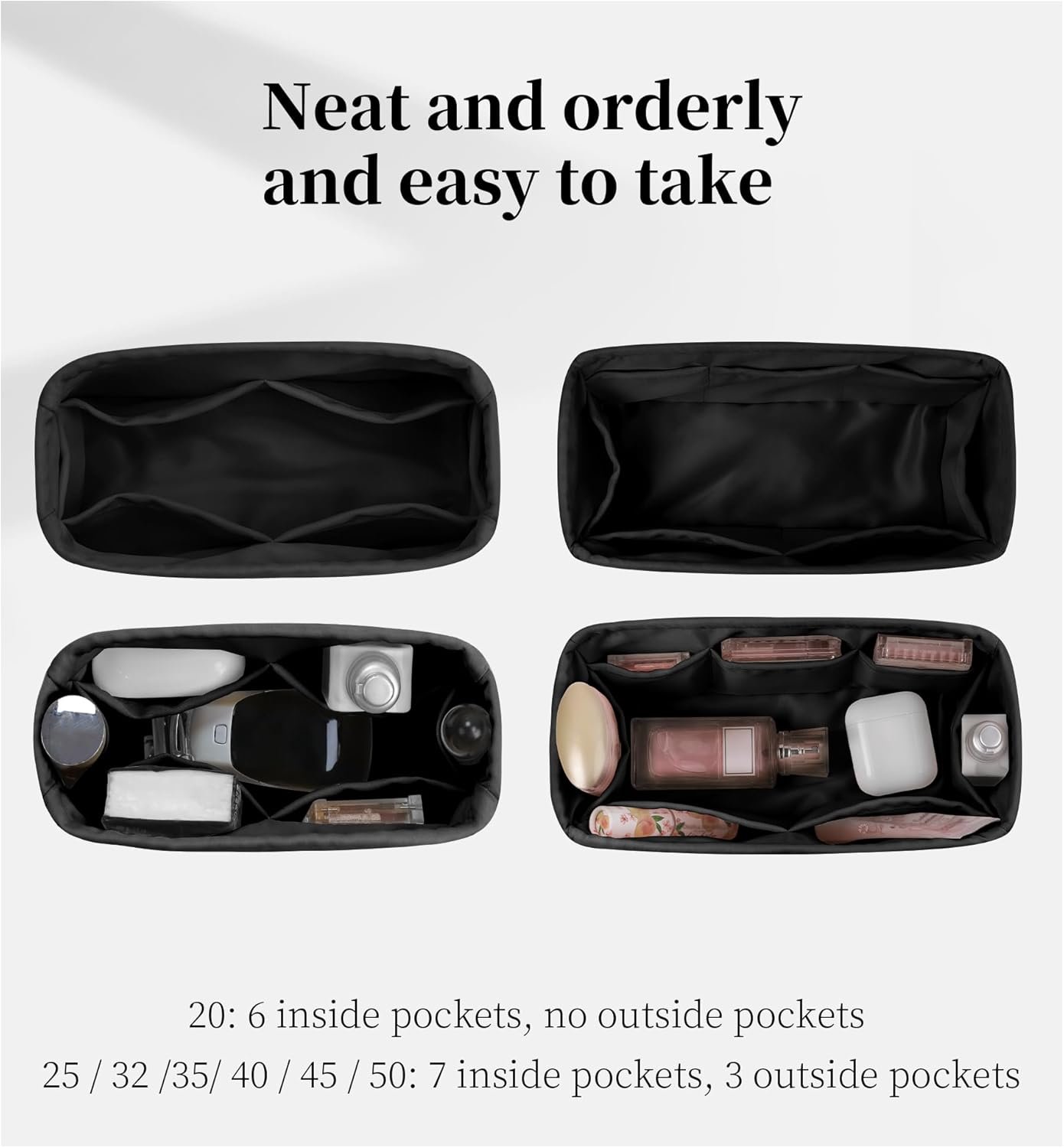 Organizer Insert for Hermes Bags, Luxury Bags Storage with Silk, Fits Birkin 35 Bags, Lightweight Shaper with Multiple Pockets for Daily Use (Black, Birkin35)