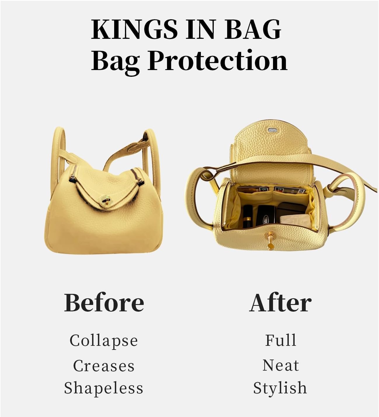 each of KINGS IN BAG’s purse inserts for handbags is tailor-made to match specific bag shapes.each of KINGS IN BAG’s purse inserts for handbags is tailor-made to match specific bag shapes.