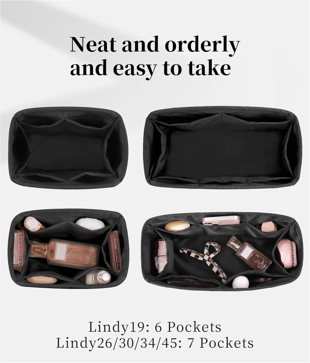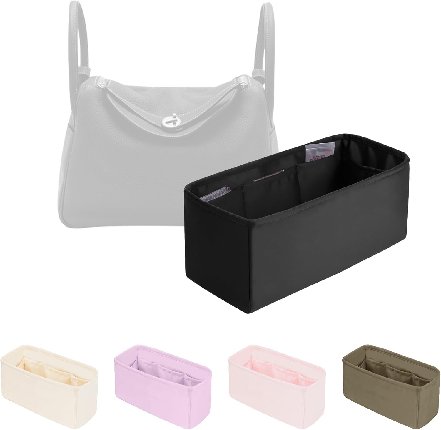 Organizer Insert for Hermes Bags, Luxury Bags Storage with Silk, Lightweight Inner Bag Compatible with Lindy 26 Bags, Multiple Pockets Large Capacity (Black, Lindy26)
