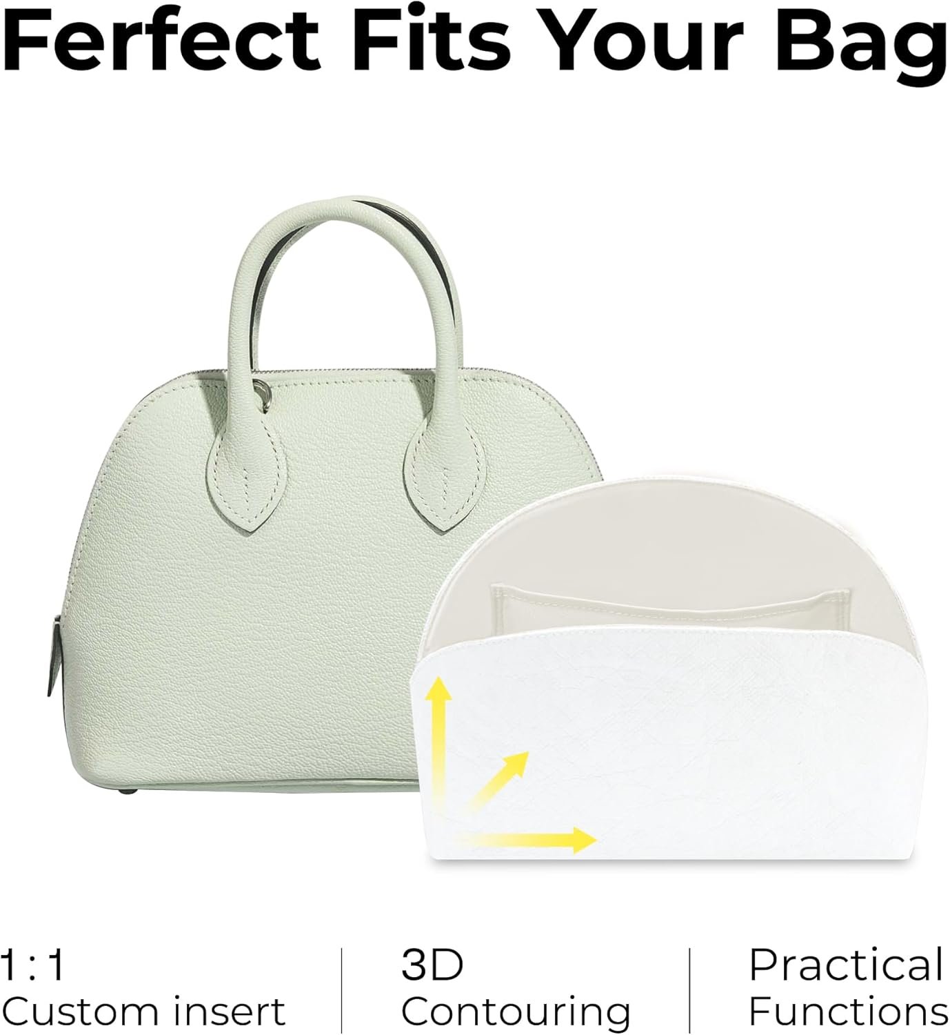 【Premium Fabric and Sewing Techniques】The Bag insert organizer for Bolide Mini features an certificated Premium Fabric exterior and a high – density stitched nylon lining, offering leakproof defense to protect it from spills or leaks. The ultra – light and ultra – thin design unlocks more space and hugs your bag’s interior like a second skin, imposing no burden in your bag. Six practical pockets maximize the luxury bag’s interior space, keeping your items neatly organized and easily accessible on the go.
