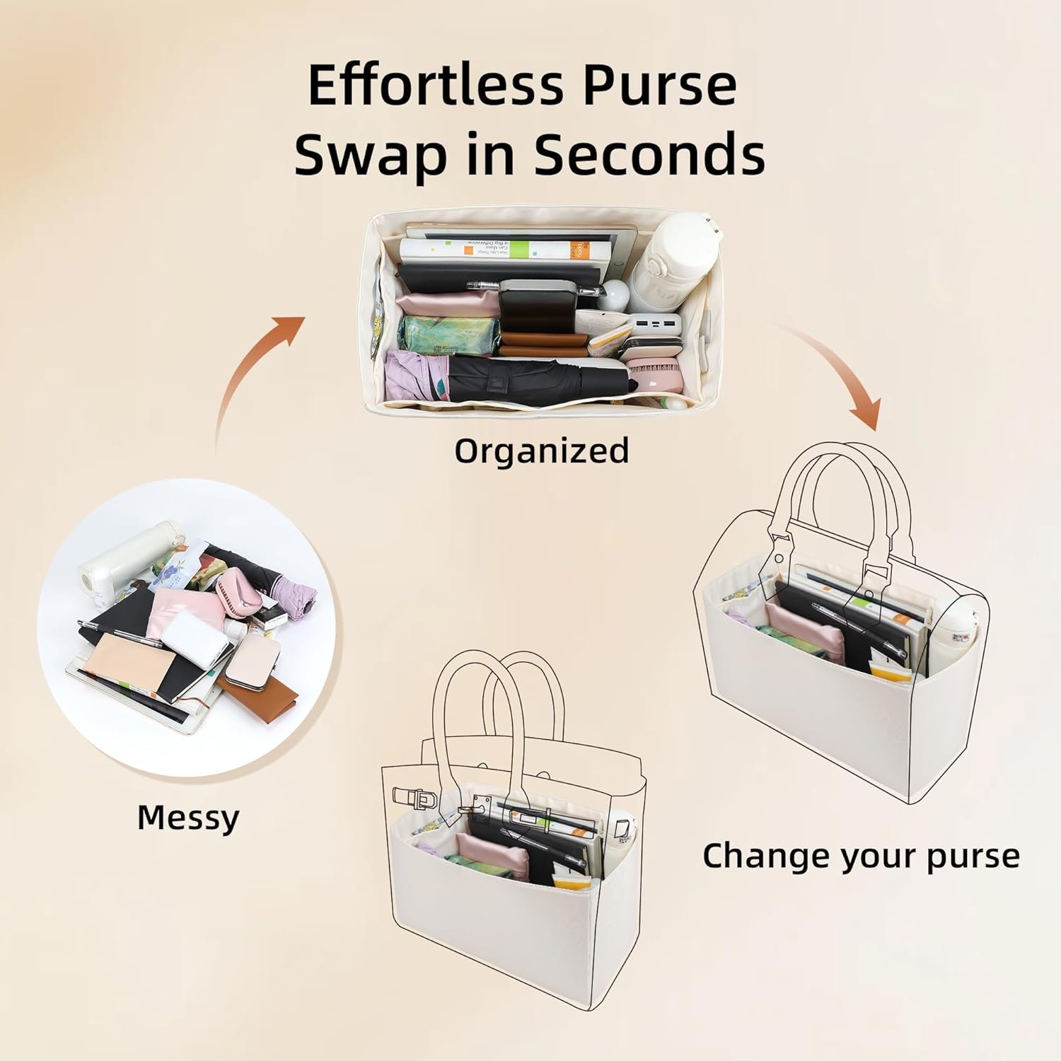 Purchase Notice: Please measure the internal dimensions of your handbag before purchasing, confirm the bag model, and then refer to the size chart for selection to avoid confusion caused by choosing the wrong size.