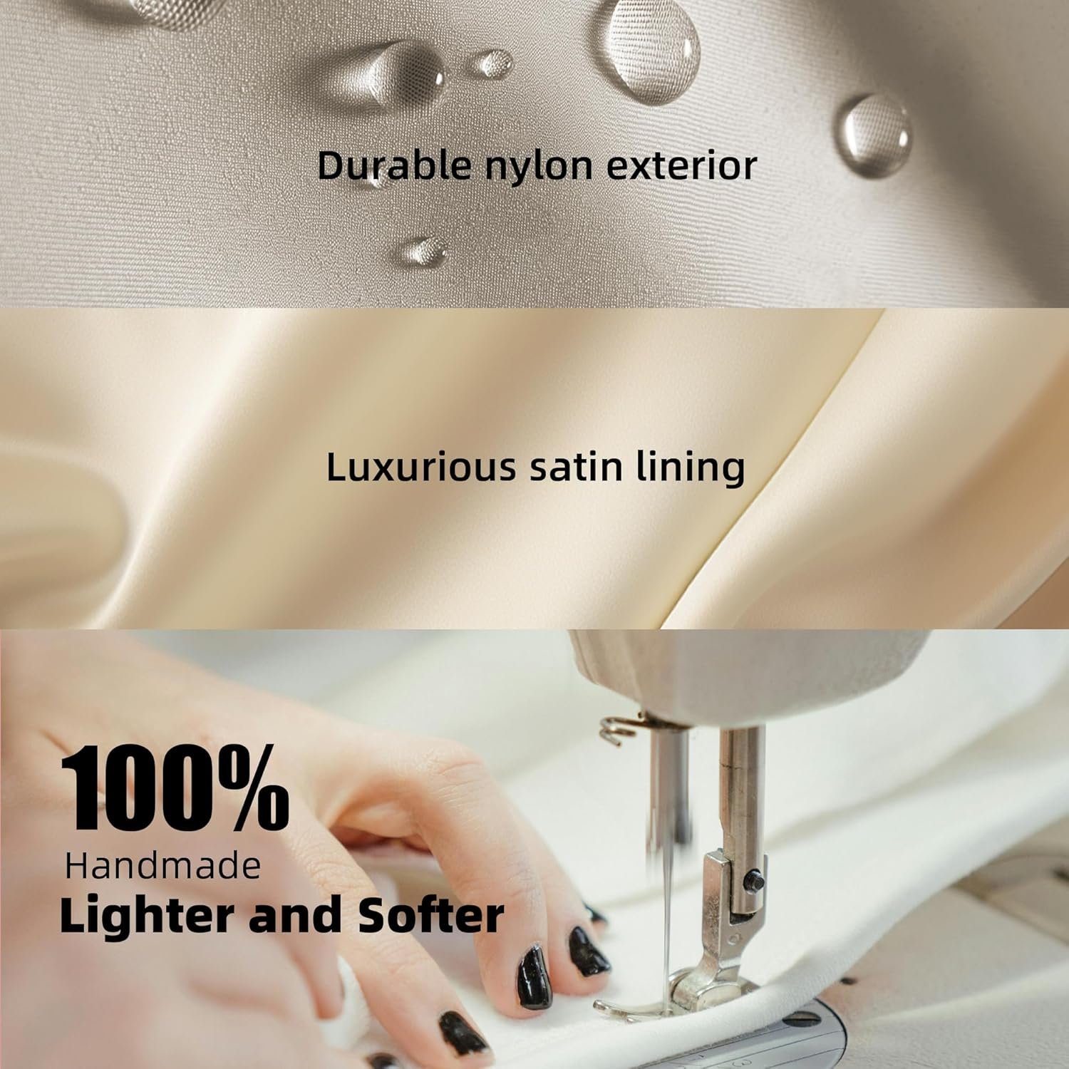 Luxurious satin and Durable nylon :The satin lining enhances refinement and comfort, while the external nylon reduces deformation and wear.Luxury and durability combined, with exquisite lining and elegant protection.