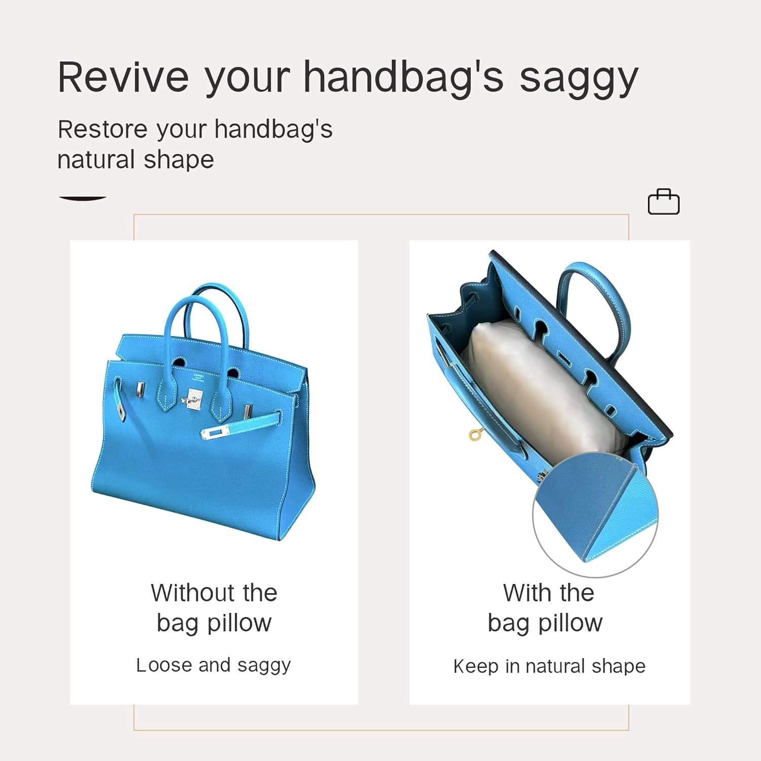 Purchase Notice: We only sell bag pillows, not handbags. Please measure the interior width, depth, and height of your handbag before purchasing, then refer to size chart to make your purchase