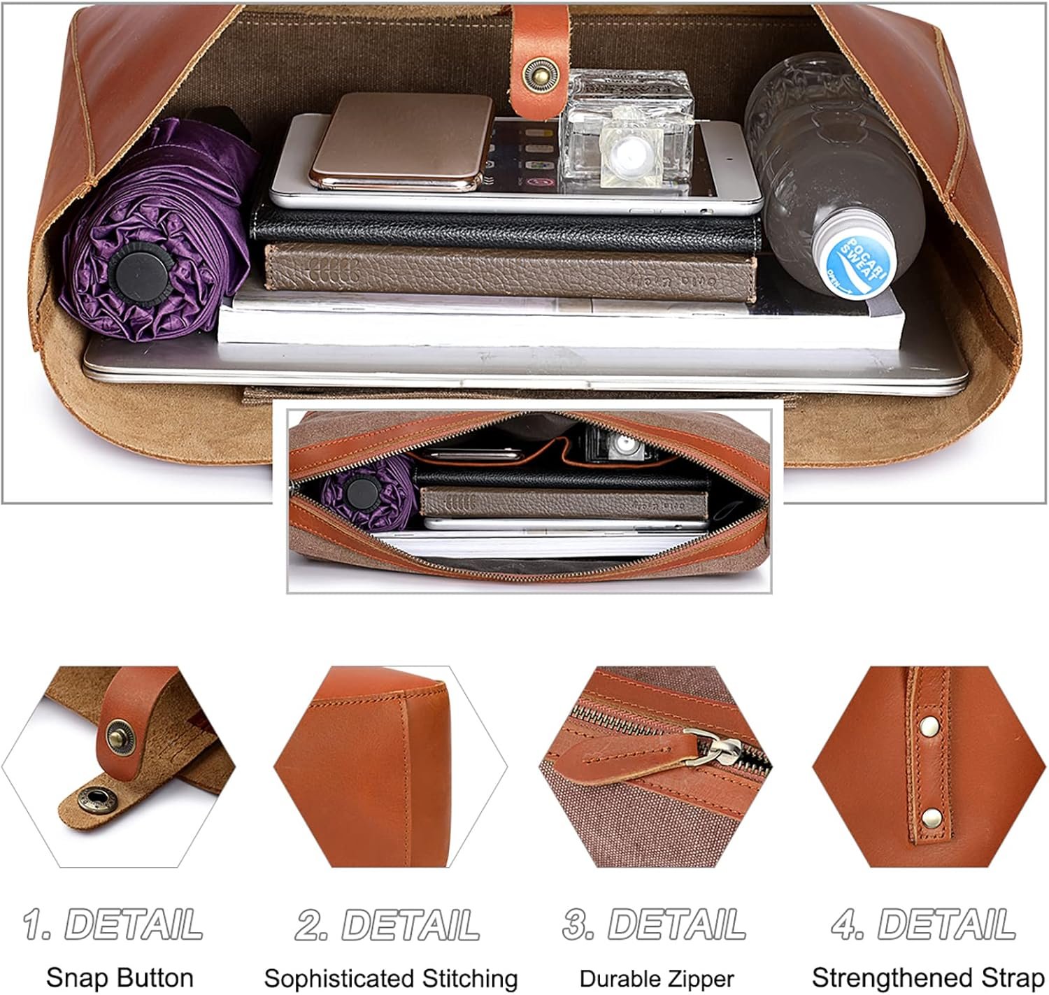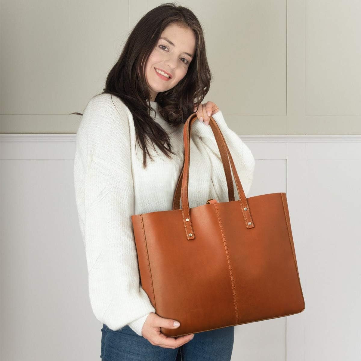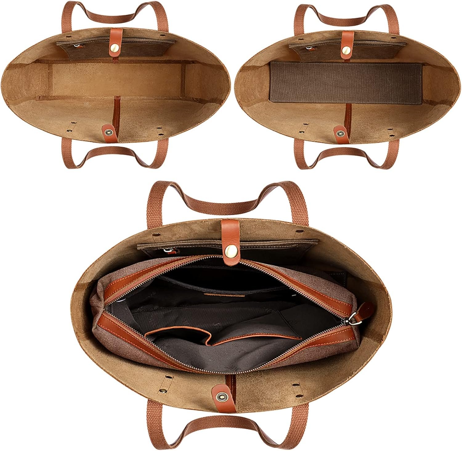 S-ZONE Genuine Leather Tote Bag for Women with Removable Insert Pouch Leather Tote BagLeather Tote Bag