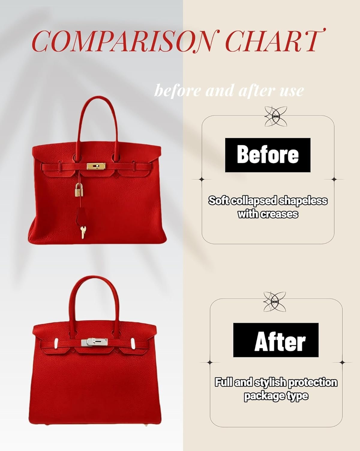 Pre-Sized Perfection for Iconic Bag Styles:”Organizers are precision-engineered with exclusive sizing for designer handbags sharing the same silhouette but varying dimensions (e.g., Birkin 25/Birkin 30/Birkin 35 sizing systems). No manual measurements—input your luxury bag’s model code for guaranteed compatibility.”