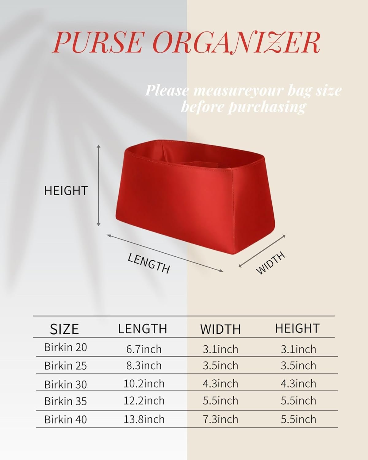 Silky Smooth Purse Organizer for Hermes Birkin 20/25/30/35/40 Bags-Lightweight Luxury Handbag Insert with Soft Touch Inner Liner(Fire Brick,BK25)