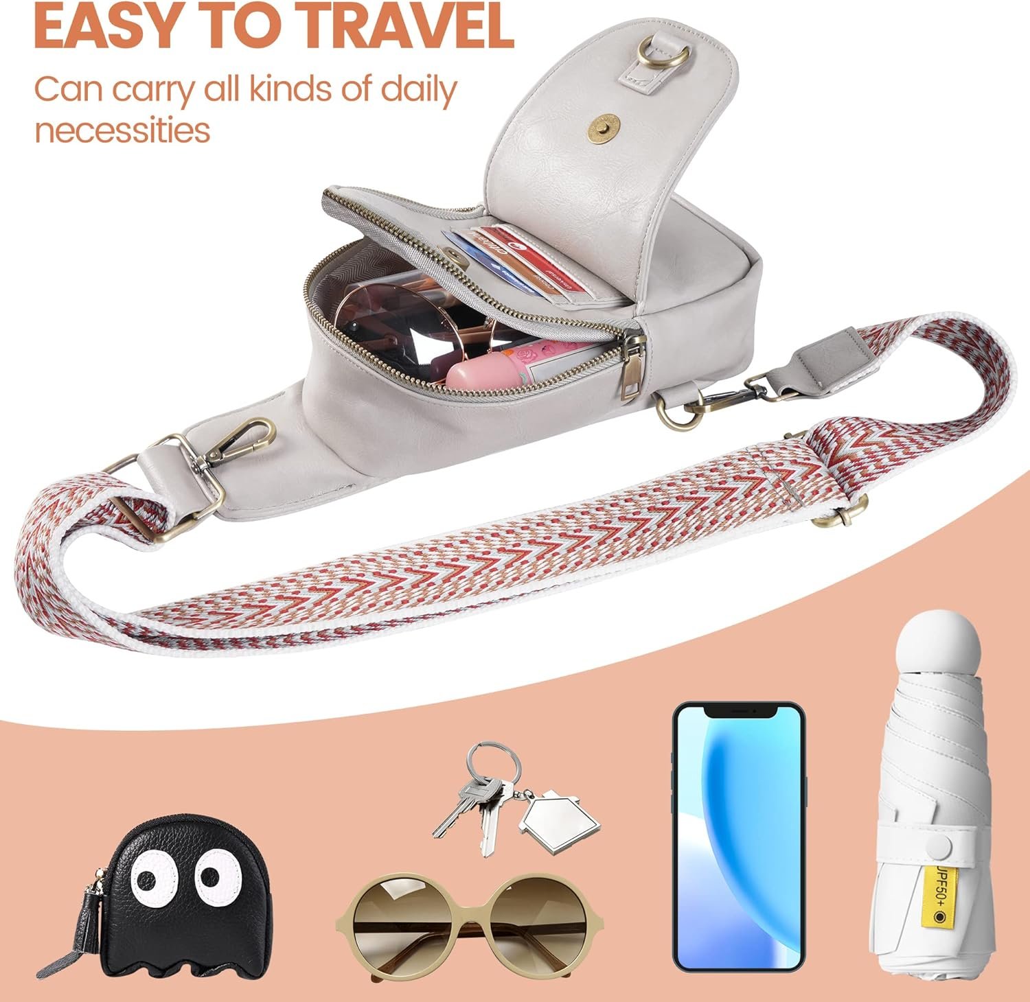 The sling purse with beautifully embroidered shoulder, cross body bag adjustable strap can adjust to the sizes for comfortable wear of the small sling bag on your front or back. Sling backpack adjustable and detachable strap can switch right to left of the bottom easily, D-Ring design is easy for side changes.The crossbody bag are waterproof, so we don’t have to worry about the sling bag contents being damaged even if water soaks the surface on a rainy day.Multi-Purpose crossbody purses for women trendy, small size but roomy space for phone,sunglasses, cash, coins, cards, keys, passport and other essentials. cross body purse makes our everyday errands easy and keeps our stuff in order.We handpick strong hardware for this small sling bag,and make sure that all the clasps,buttons and zippers are strong and work perfectly.