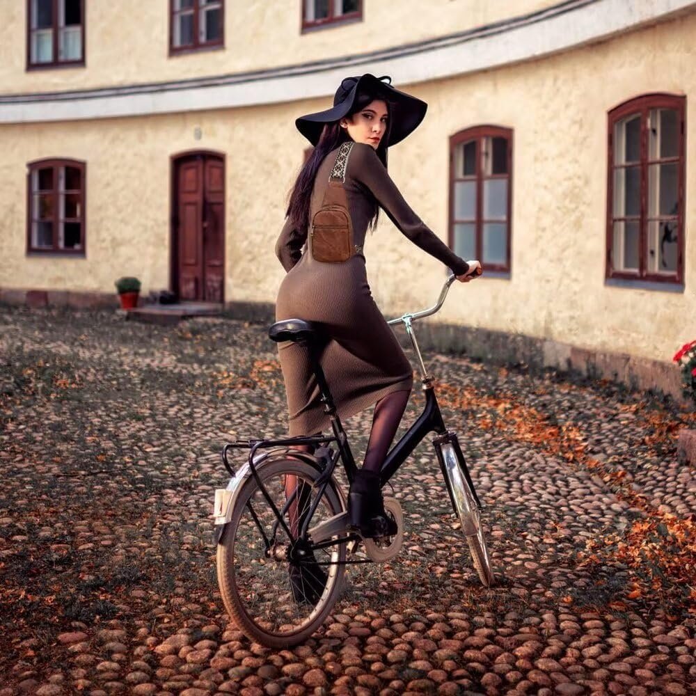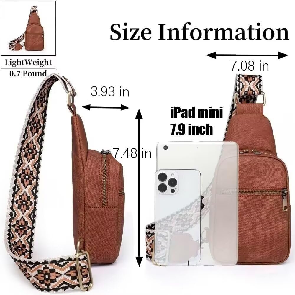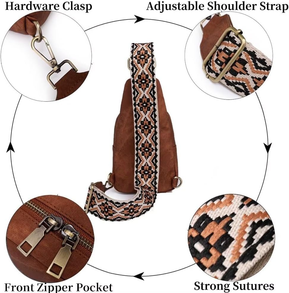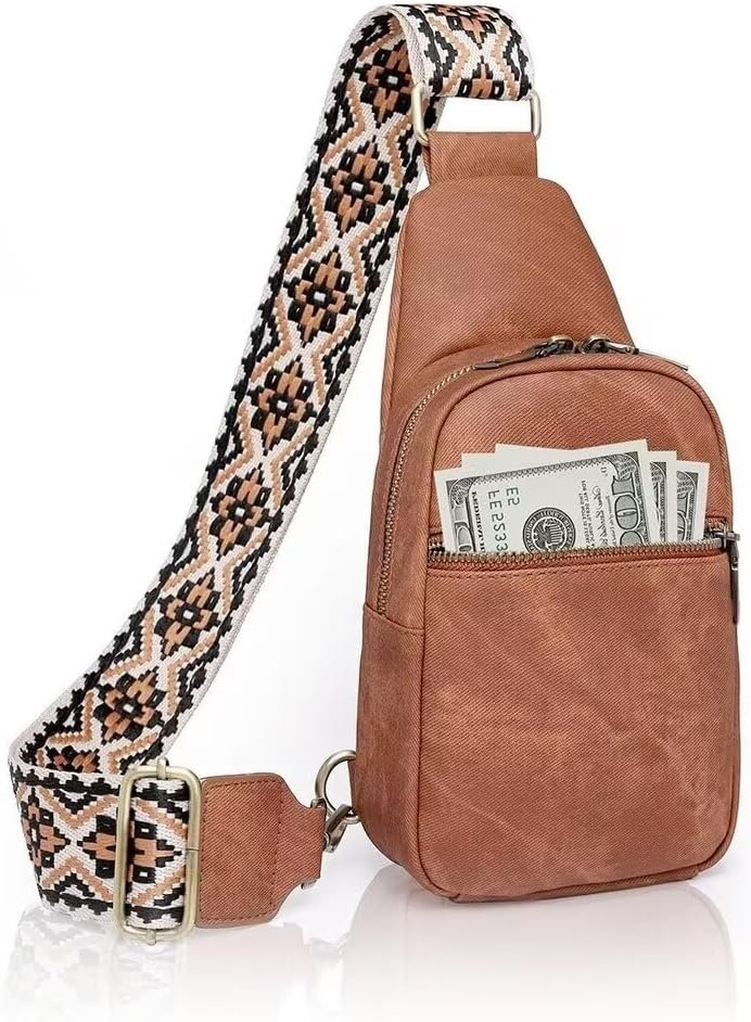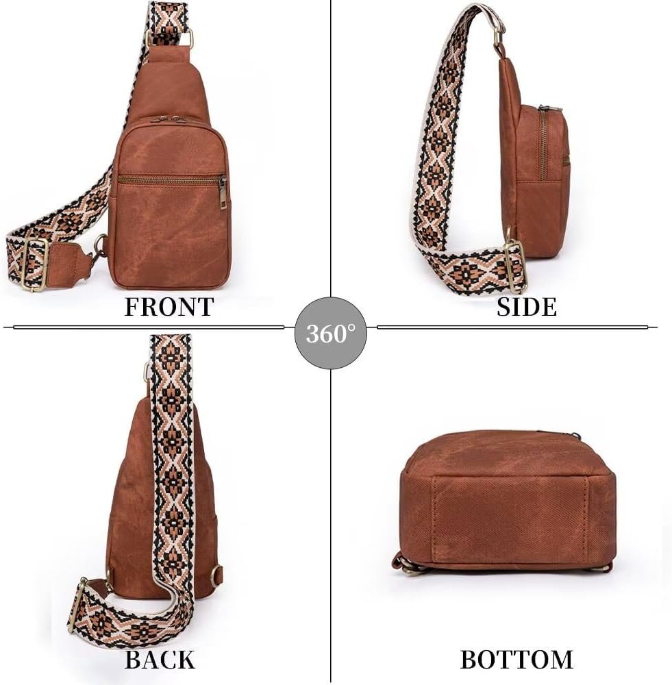 KlaOYer Sling Leather Bags For Women Crossbody Small Fanny Pack Purses Chest Bags With Guitar Strap For Gril Lady