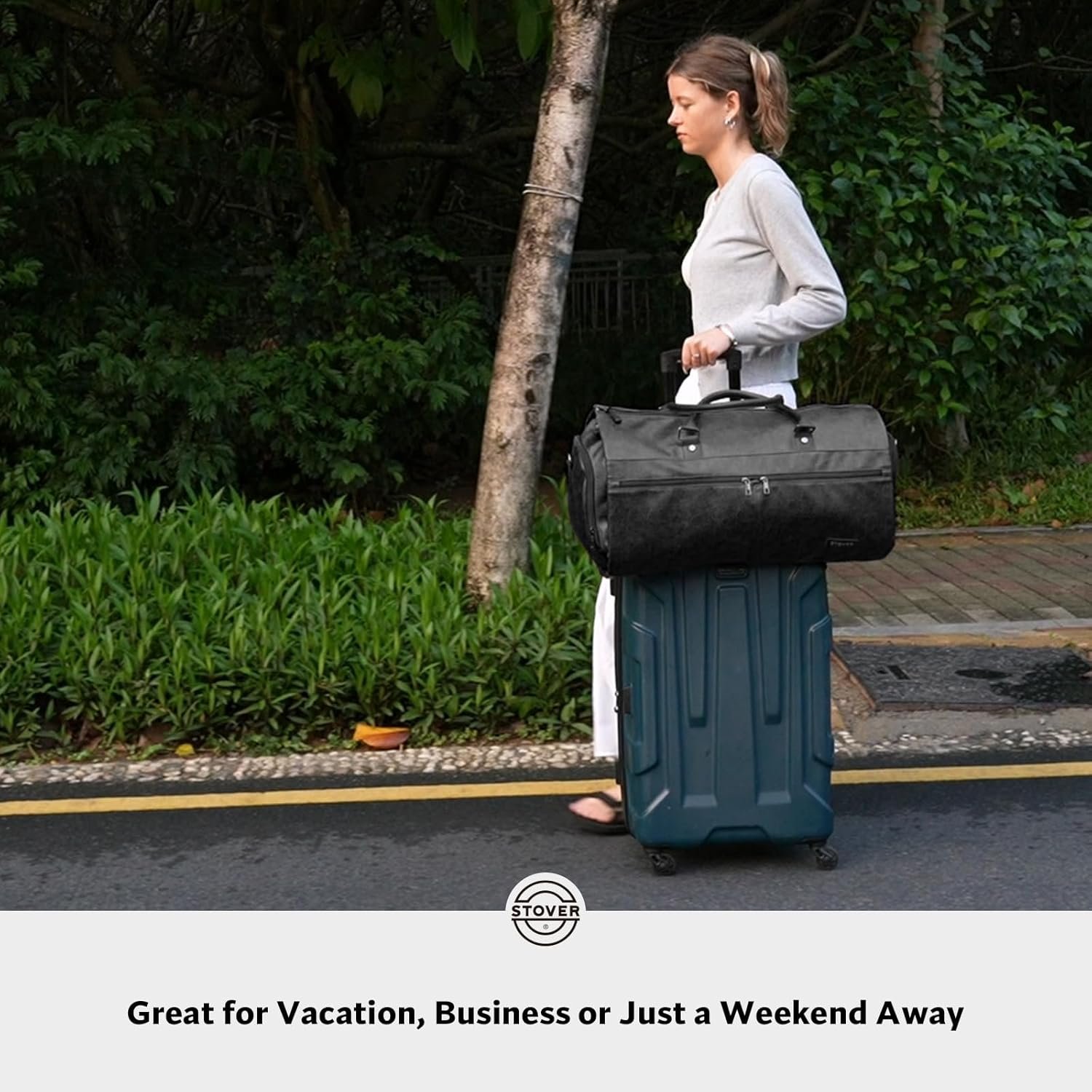 The video showcases the product in use.The video guides you through product setup.The video compares multiple products.The video shows the product being unpacked. STOVER Garment Bag Merchant Video