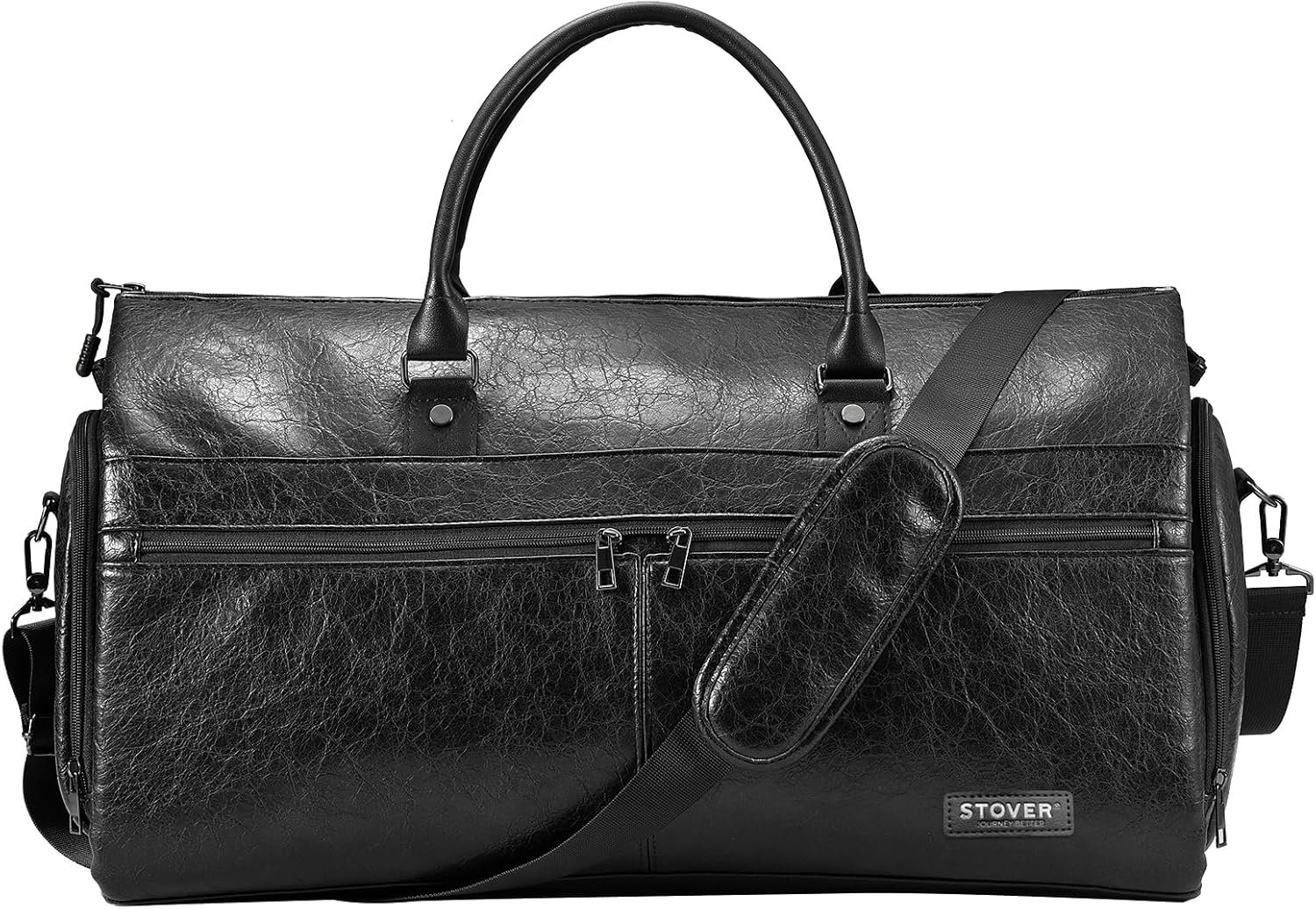 PREMIUM, FUNCTIONAL AND REFINED EXTERIOR: The faux leather exterior features multiple pockets, comfortable carry handles, a removable & adjustable shoulder strap plus a luggage sleeve to attach your bag to the handle of a suitcase. It’s sleek, versatile design makes this weekender bag perfect for any occasion.