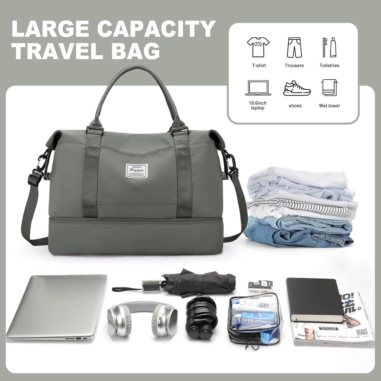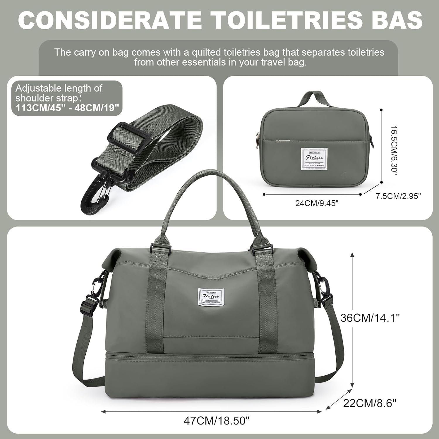 Weekender Bags for Women, Travel Duffel Bags with Shoe Compartment,Personal Item Travel Bag for Airlines, Carry on Overnight Tote Bag for women with Toiletry Bag, Olive Green