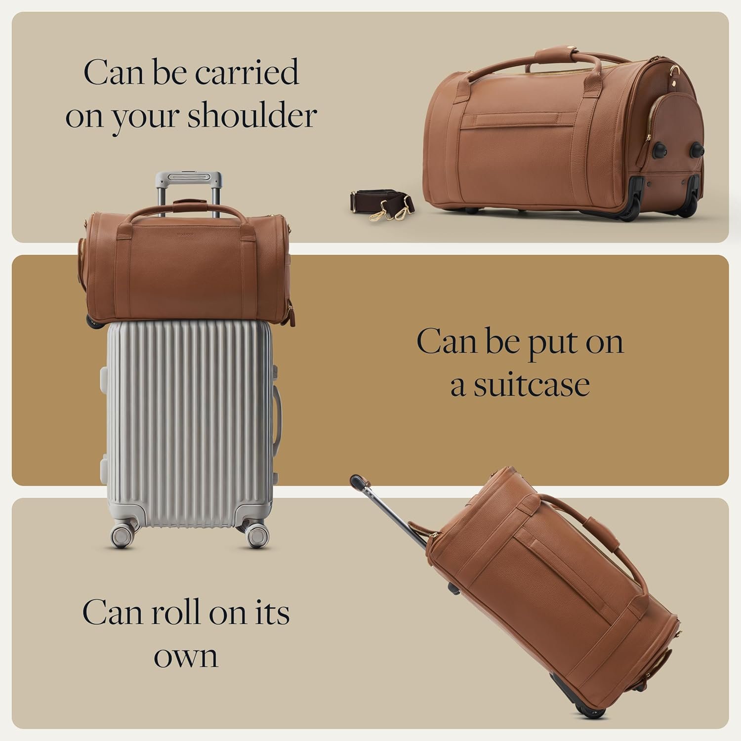 STYLE MEETS FUNCTIONALITY – Designed for the modern traveler, this duffle bag for travel combines timeless style with smart functionality. With rolling convenience, ample storage, and a built-in garment bag, this carry on bag ensures a seamless travel experience, making it a must-have among travel essentials for women and men.